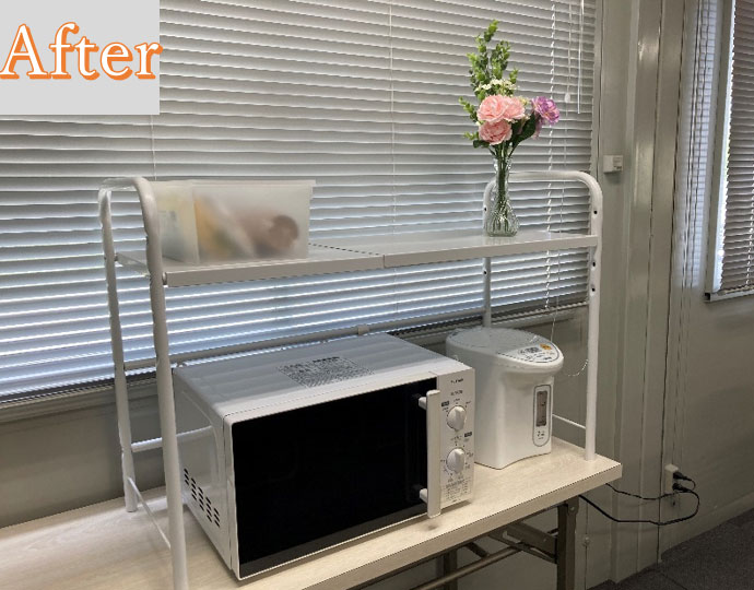 さらに、電子レンジやポットがバラバラに置いてあるので、1か所にまとめていきます!