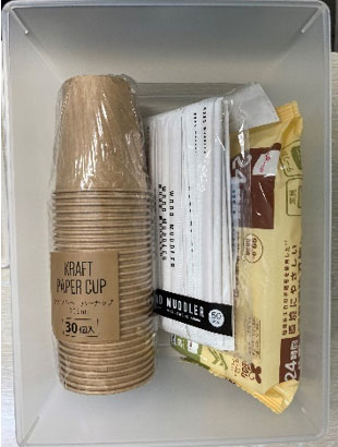 棚の上に置いてある入れ物の中には、食事中に使えるものを入れました🍴
