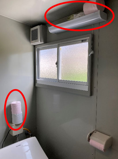 中を見てみると、トイレットペーパーがいたる所に置かれていました。
