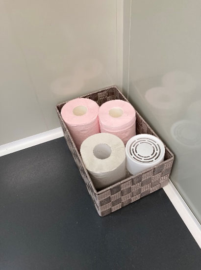 快適トイレは、ケース類が見える部分に置いてあり、手洗い場付近が少し寂しい感じでした😮