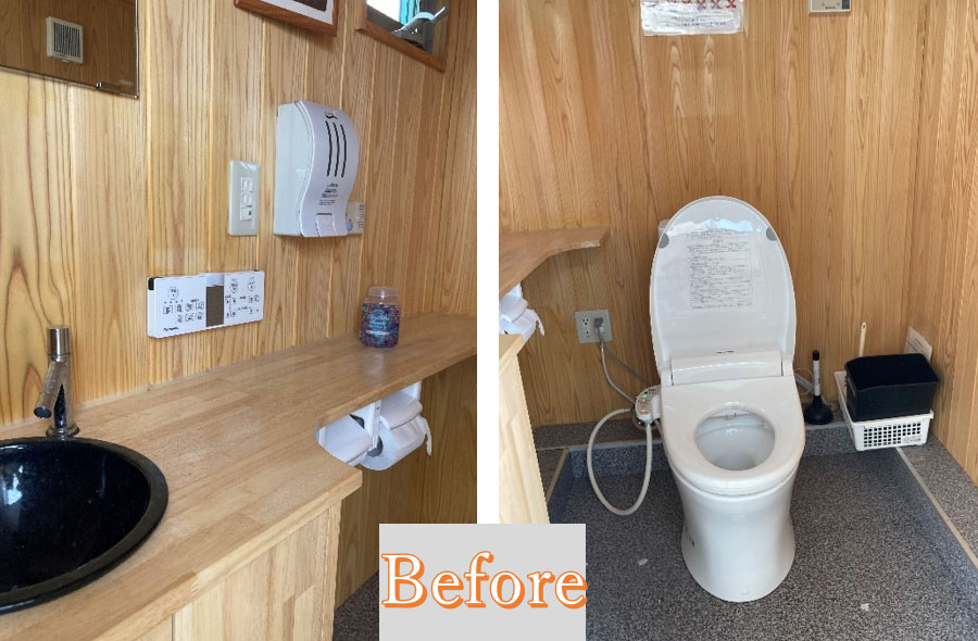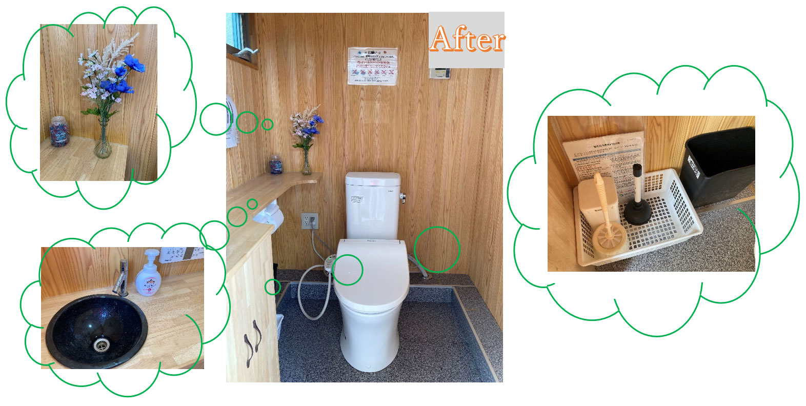 この休憩所、休憩所内トイレも少し寂しい印象を受けるのでコーディネートしていきます👏