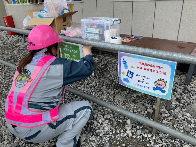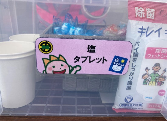 現場内の休憩所には熱中症対策グッズが置かれていました🍭