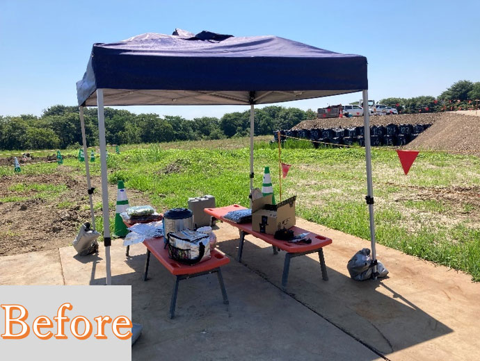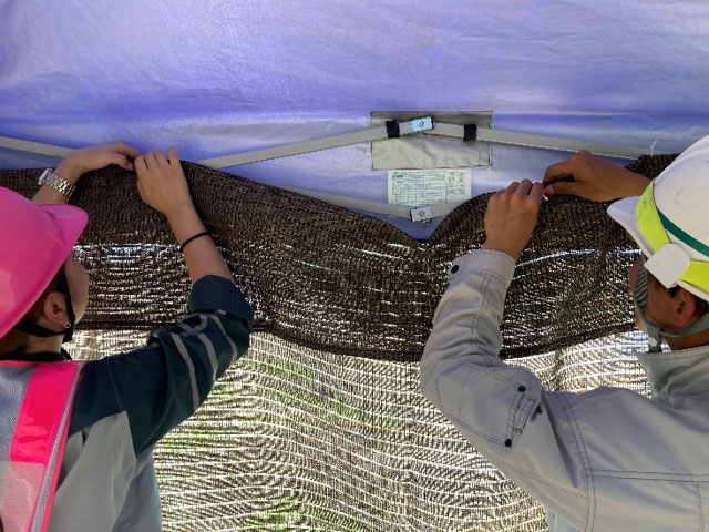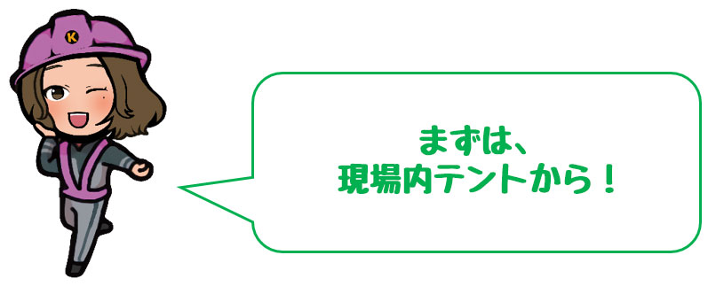 工事現場の中には、熱中症対策としてテントを使った休憩スペースがあります!