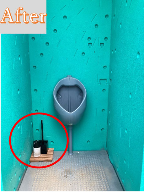 男性用トイレに芳香剤やトイレブラシが設置されていなかったので設置しました!