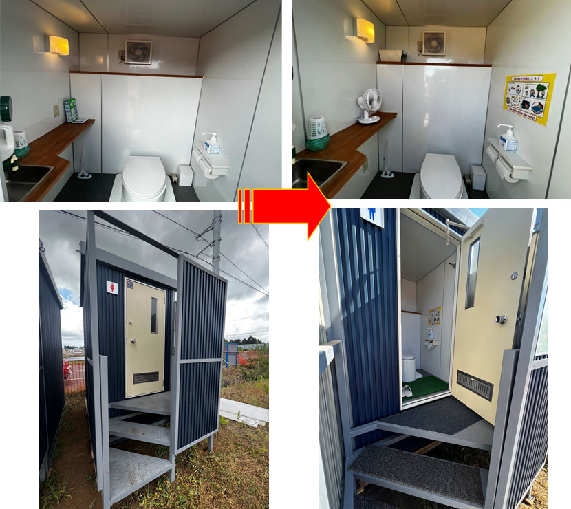 トイレ内は土足禁止にしてステップにも泥落としを付けトイレ内は完全土足禁止に。扇風機も設置しました。