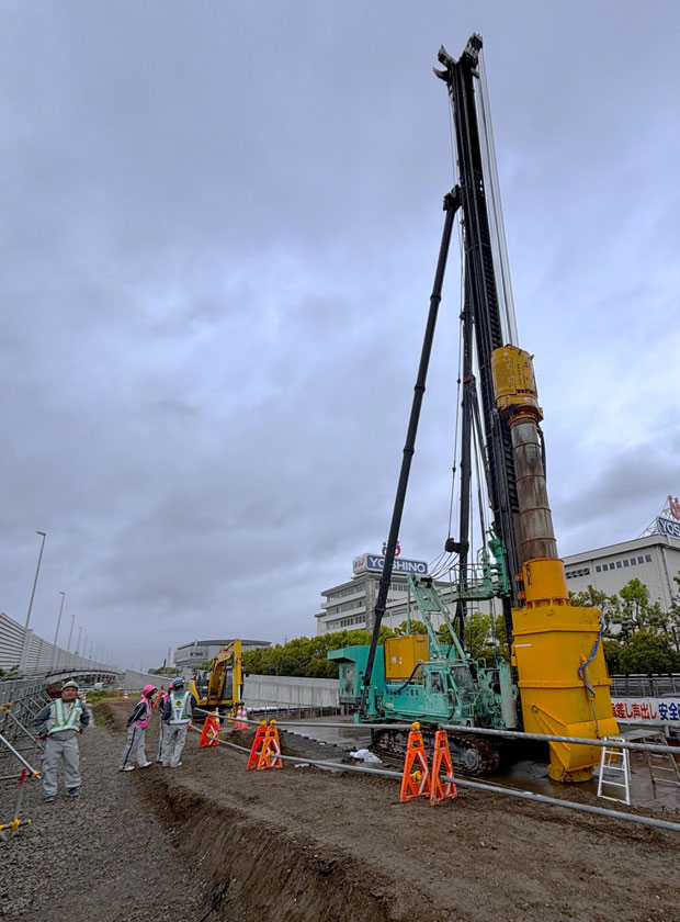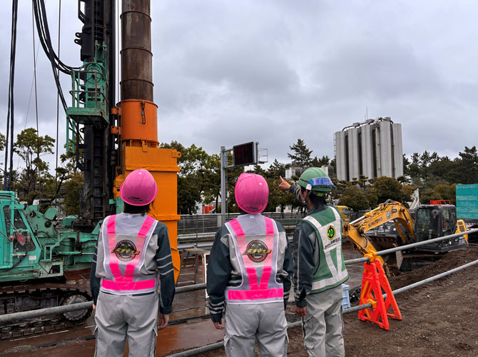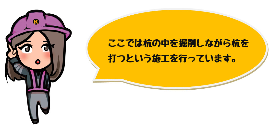 この日は現場に杭打機があり、大きさに圧倒されました。