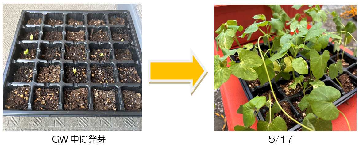 ゴールデンウィーク前に朝顔の種を購入したので、女子パト隊員が自宅に持ち帰って発芽に取り組んでくれました🥺✨