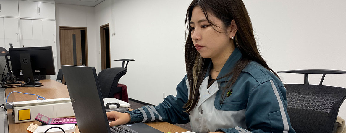 業務で心がけていることは、コミュニケーション。働く人全員が仕事をしやすい環境にするために積極的に現場監督と会話をして、私と現場監督の両方が効率よく仕事に打ち込める環境の実現を目指しています。