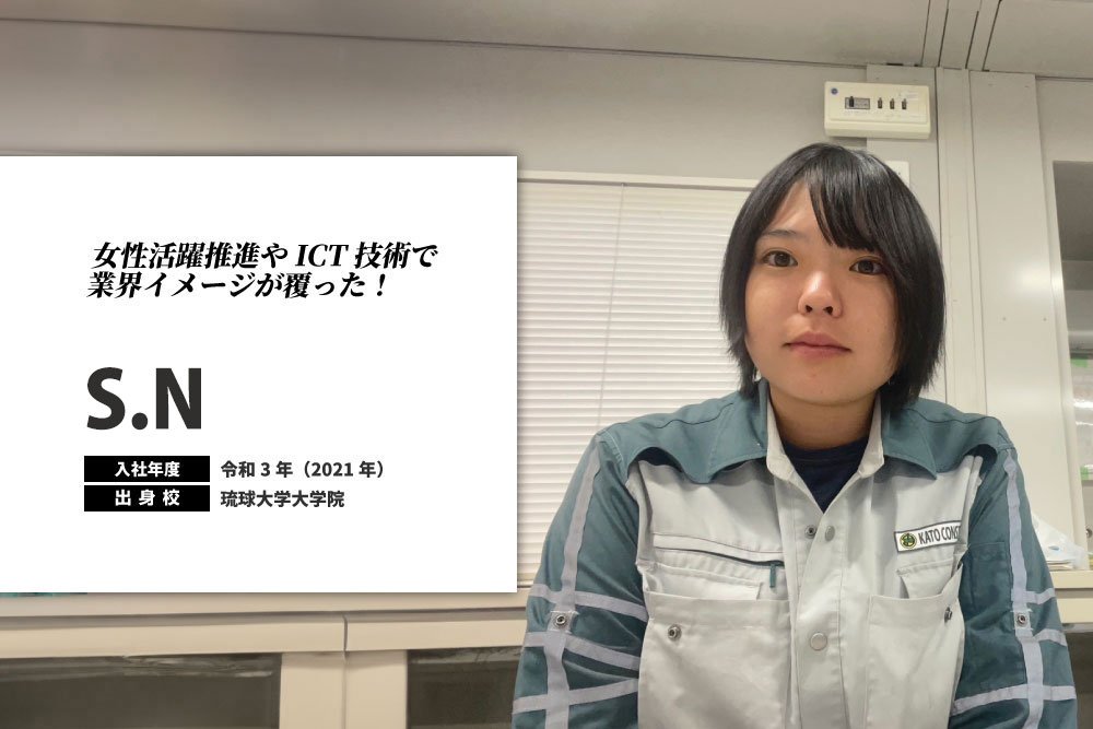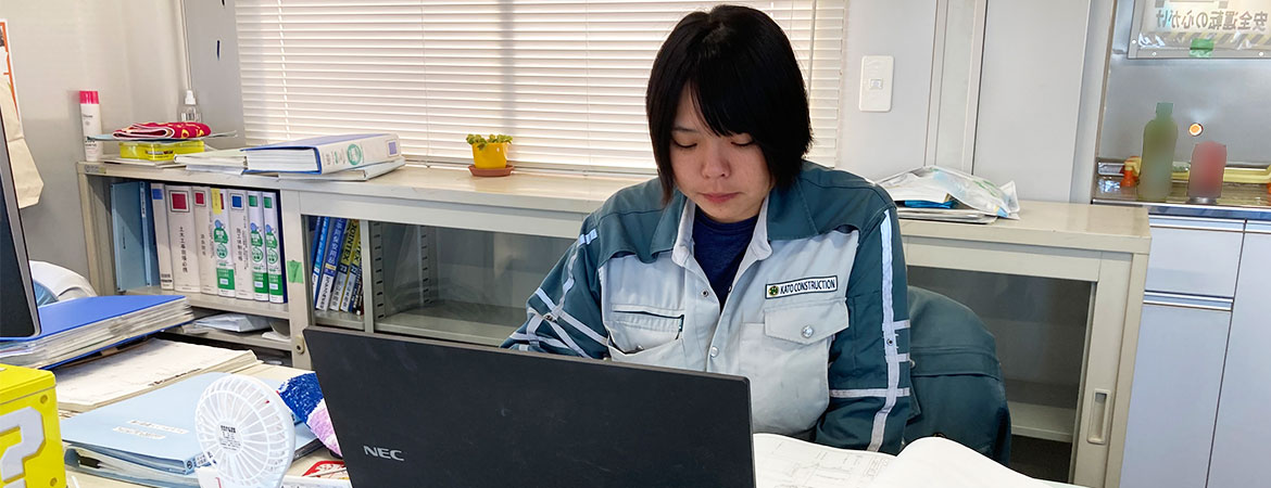 その時の雰囲気がとても良かったので加藤建設に入社を決めました。中小企業だからこそのスピード感が魅力で、働き方改革を進めていて、福利厚生も充実していたのがポイントですね!