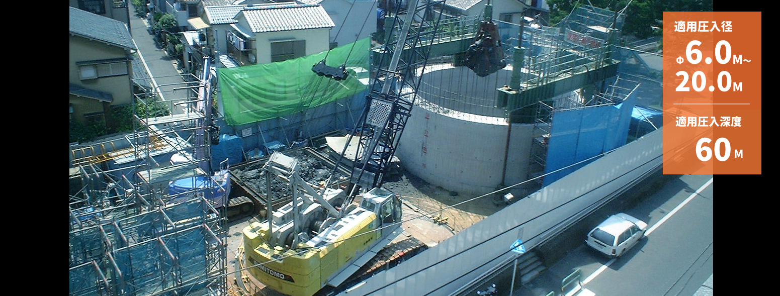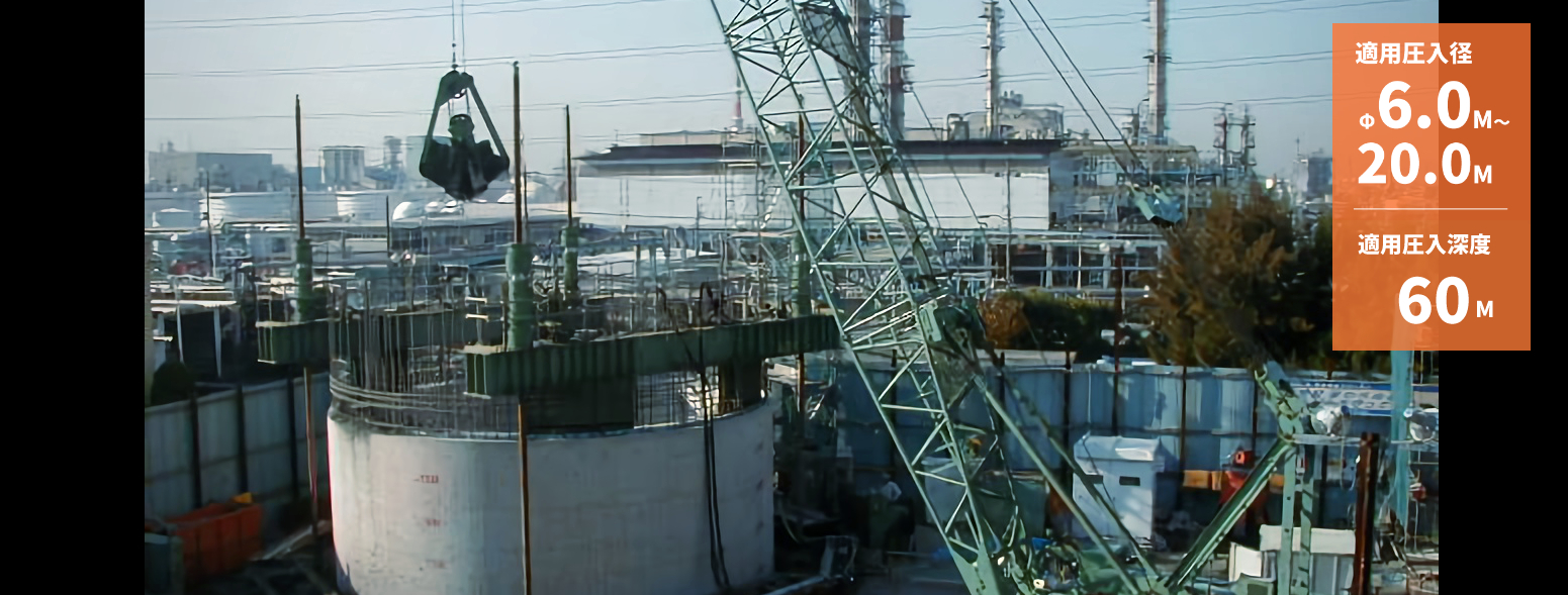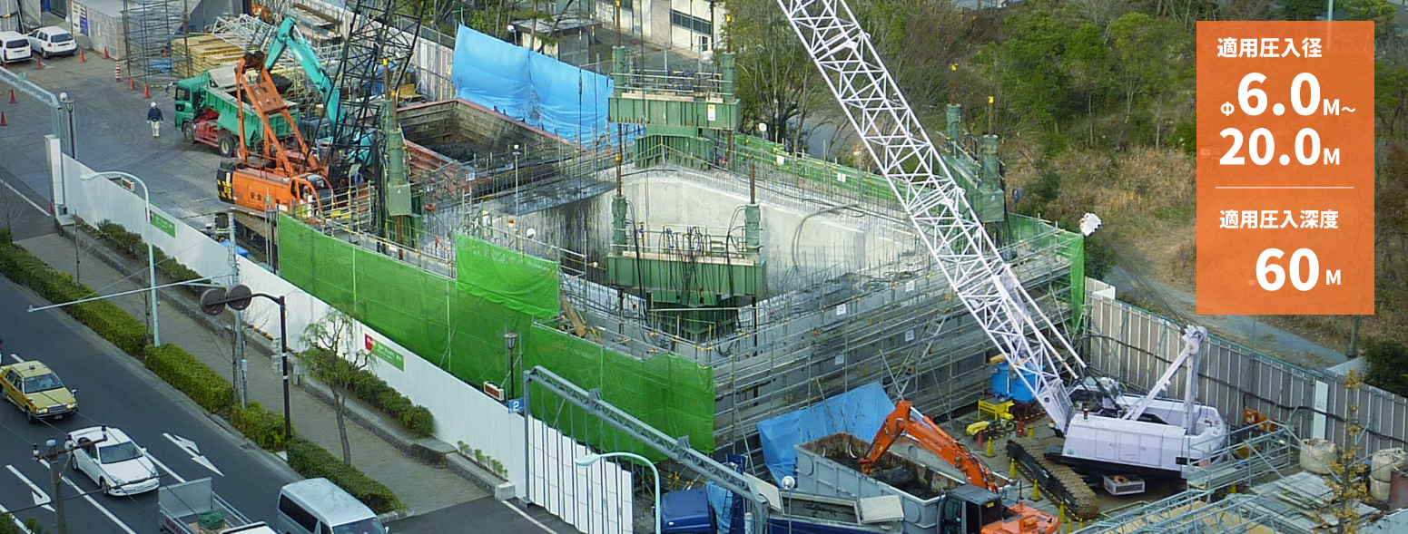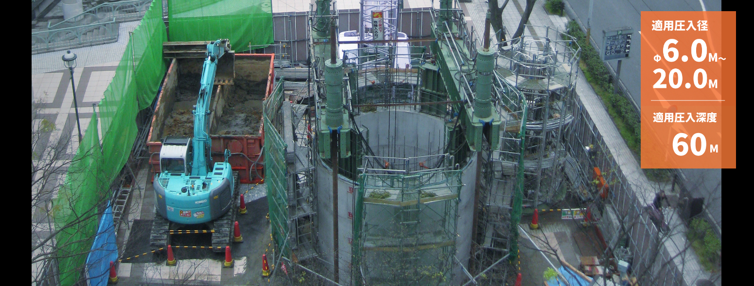 躯体及び施工方法は一般的な圧入式オープンケーソンですが、当社の開発したグリップジャッキシステムを使用することで姿勢制御能力に優れ高品質な施工精度を確保できます。