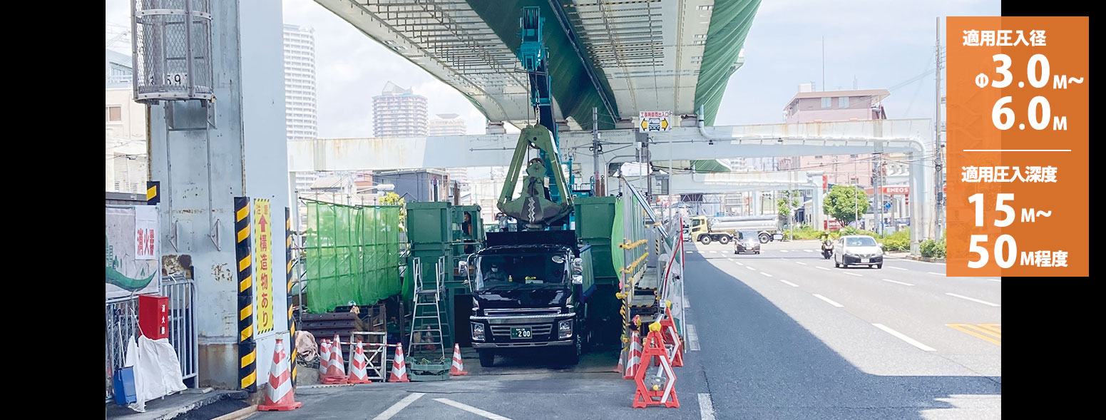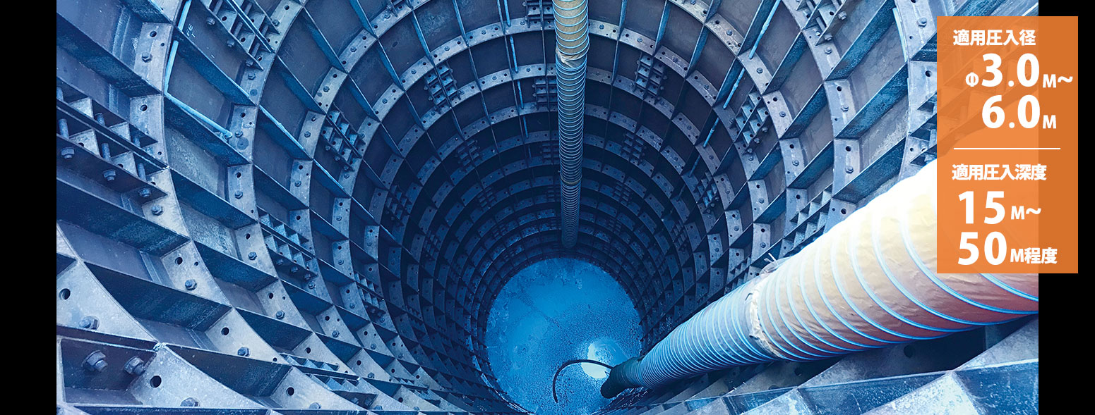 立坑を構築するための土留め壁として使用される鋼製セグメント(製品名:アーバンリング)の縦目地継手を剛構造のボックス構造継手とした剛リング体とすることにより、後打ち鉄筋コンクリート基礎における主筋を拘束する部材として評価し、帯筋を省略することを可能とした混合構造基礎の技術です。狭隘地や上空制限のある現場で、柱状体基礎を短工期で構築することが可能な工法です。