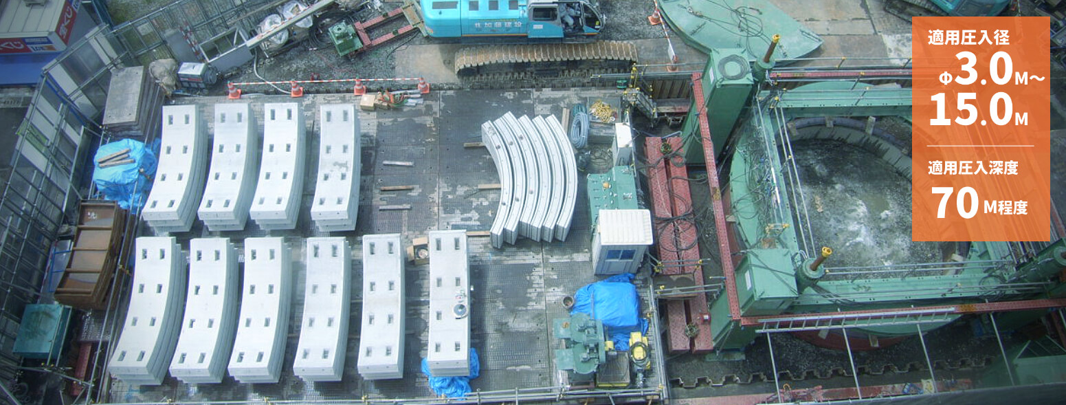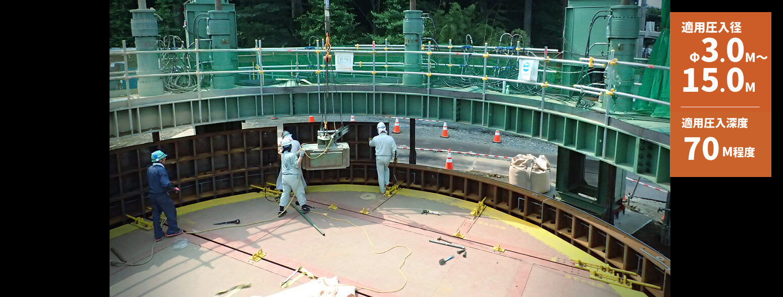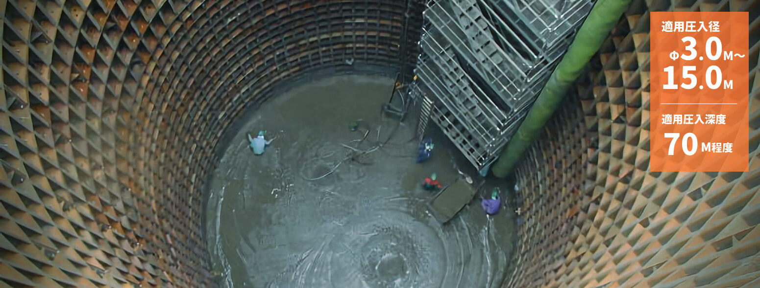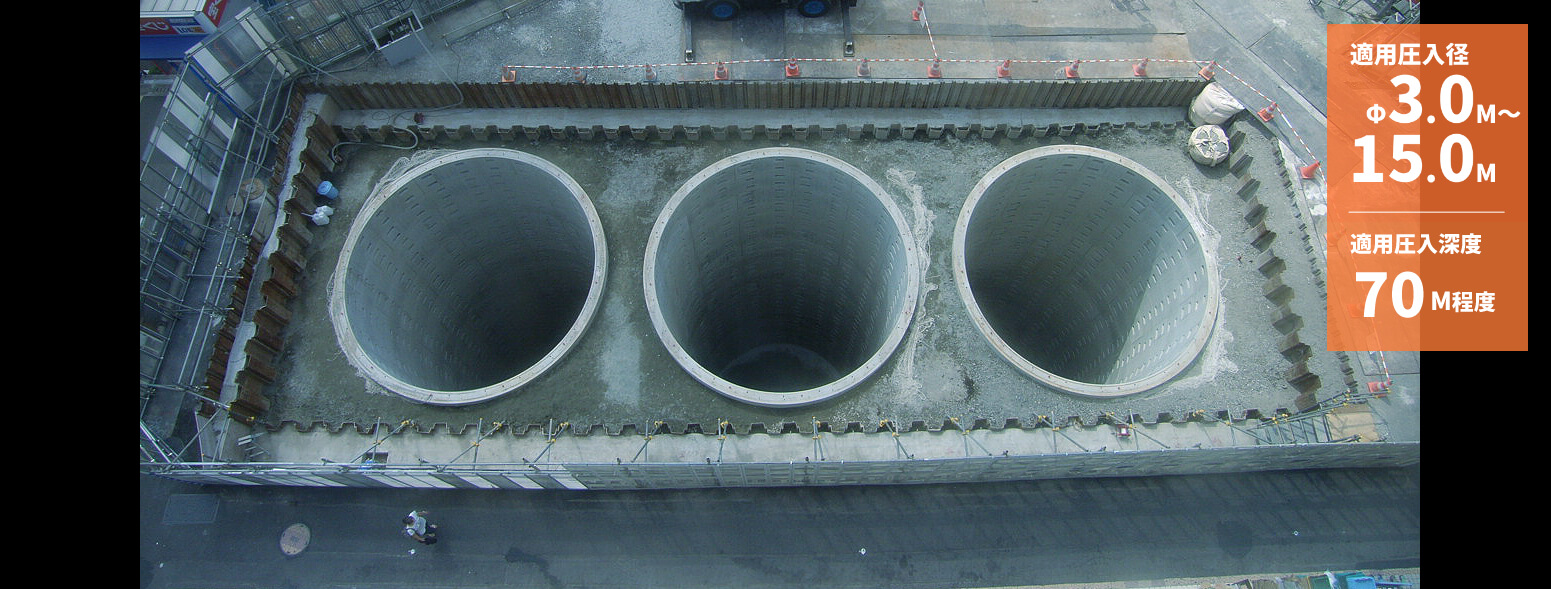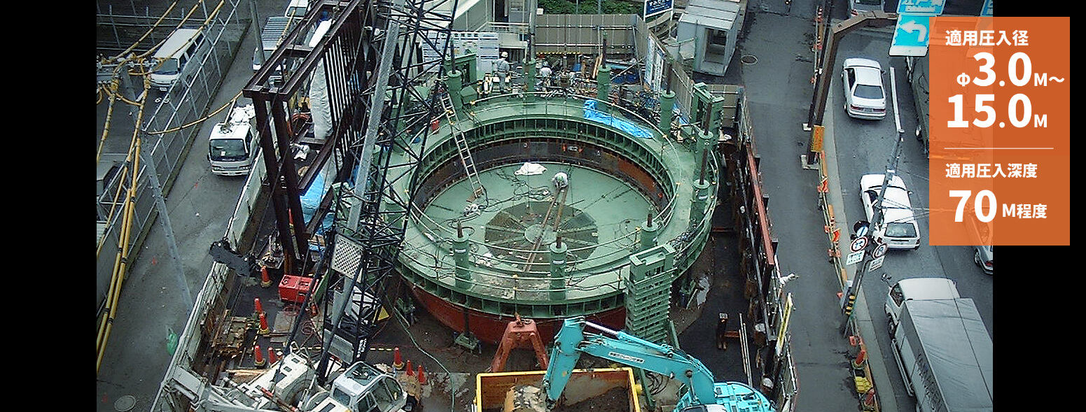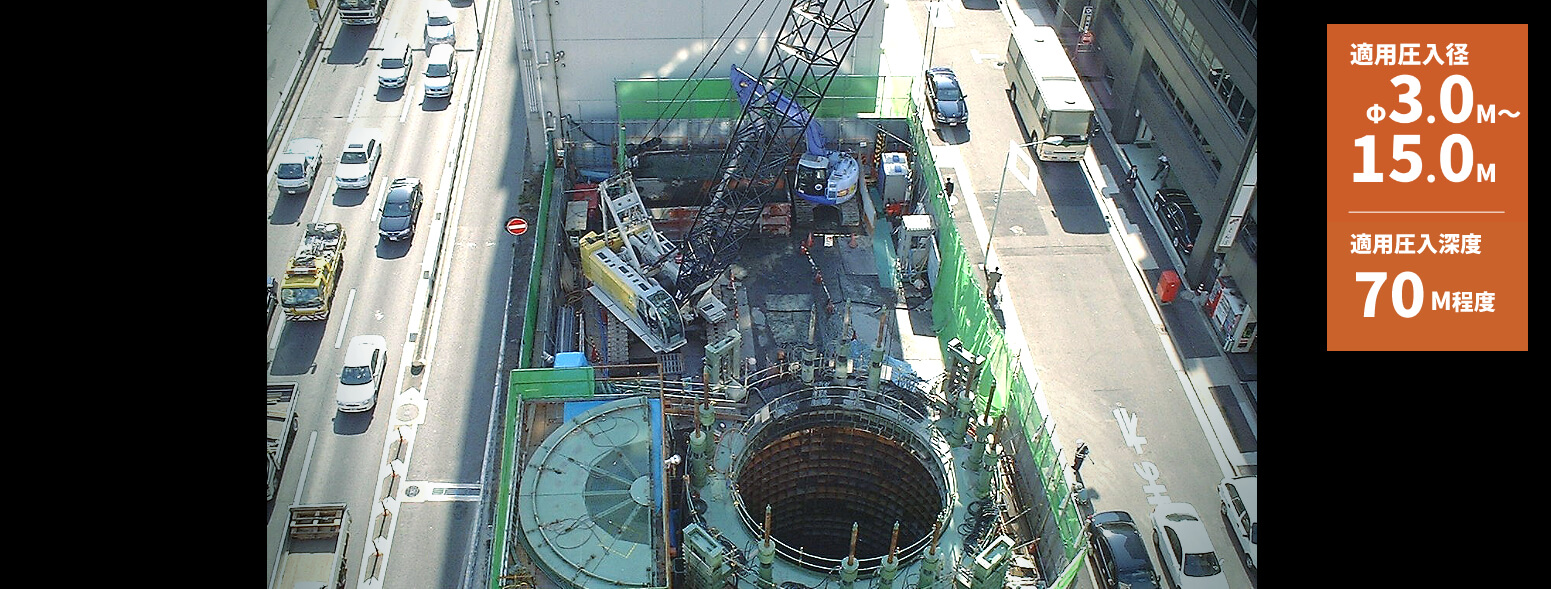 地盤改良が不要で、掘削時の坑内は無人です。周辺環境と作業現場に優しい安全・確実な都市型工法です。