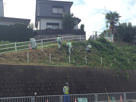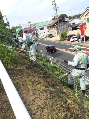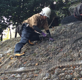 万が一のことを考えて、安全帯を腰に巻いて作業。