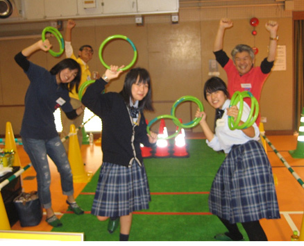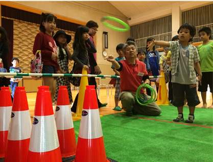 「カラーコーンわなげ」と「パワーショベルアメすくい」