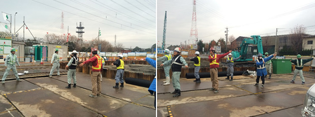 7時45分 現場監督さんの一声でみんなそろってラジオ体操~!