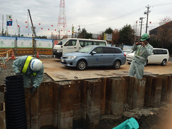 この鉄板はクレーン車などの重機が作業しやすいように