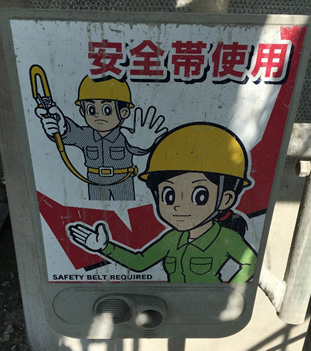 この看板は「安全帯を必ず使用してください」と、しゃべるんです(^^)/
