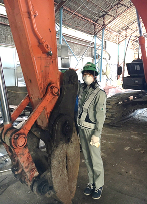 私とショベルカー先端の大きさを比べてみました♪