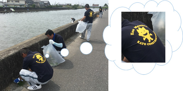 周辺のゴミ拾いや野草刈り、それから川のゴミ集めです。