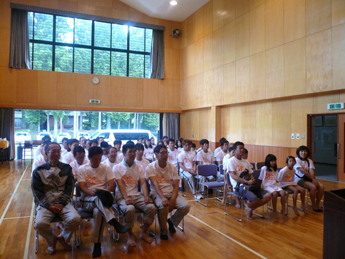 受付を済ませた後、お揃いのTシャツに着替え、さっそく開会式(^_^)