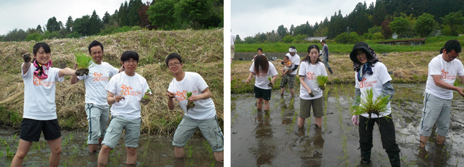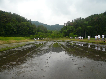 こーんなにも広い田んぼを機械を使わず田植えをしていきました♪