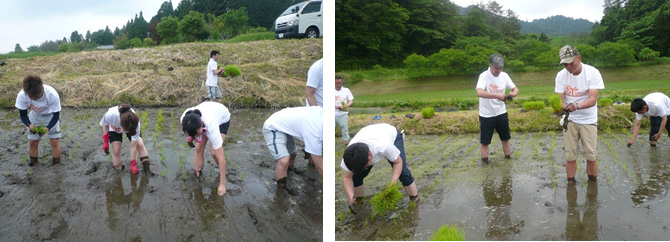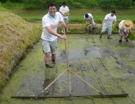 新入社員の子に苗を植える線を引いてもらいました(^^)