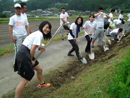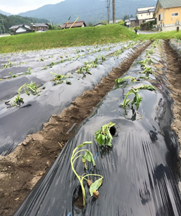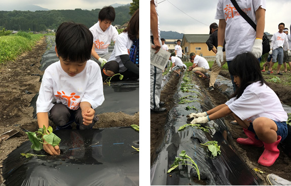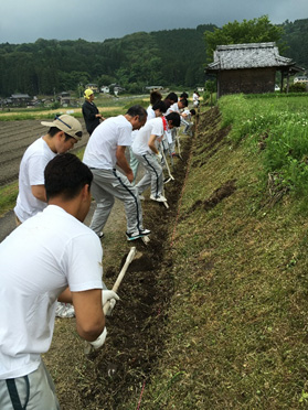 お芋の苗植えと土側溝作りの班に分かれての作業でした。