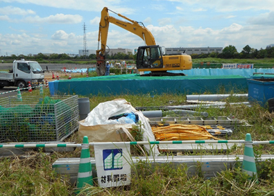 ここの現場は地震が来た時、堤防が壊れないように補強する工事をしてました。