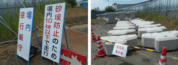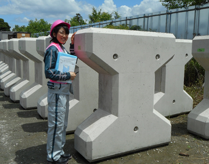 この現場は日光川水閘門の護岸に設置する“のり面ブロック”を作っていました。