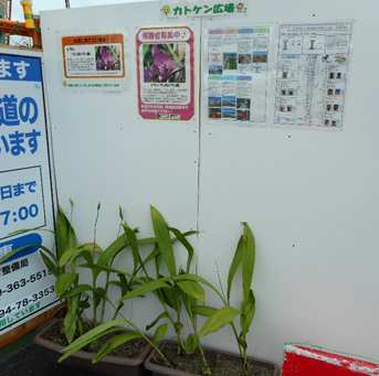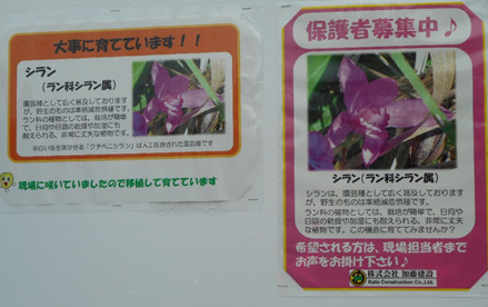 その掲示板の下に現場で保護された「シラン」という植物がありました。