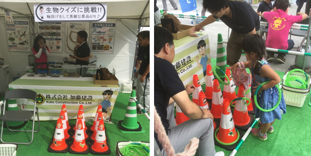 展示されている生き物のクイズに答えたら輪投げができます。