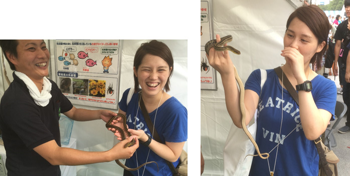 自然環境課のヘビ使い、鈴木さんがシマヘビを操りながら紹介しました♪