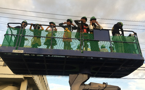 もちろん安全帯とヘルメットは着用!