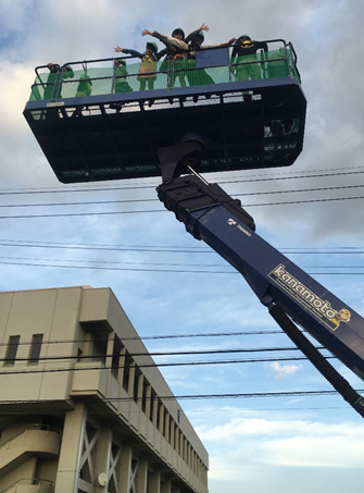 この高所作業車は20mの高さまであがります…!