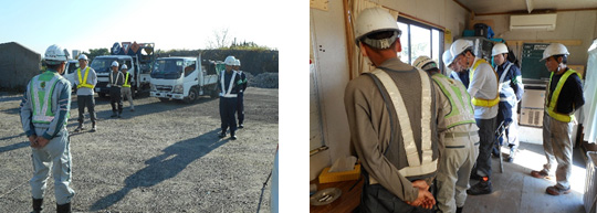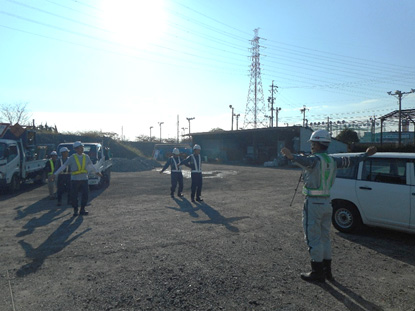 ラジオ体操が終わったら今日の作業確認やKY活動。