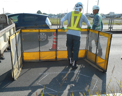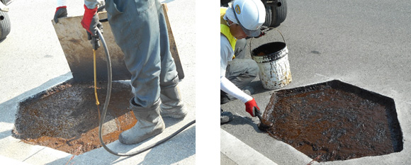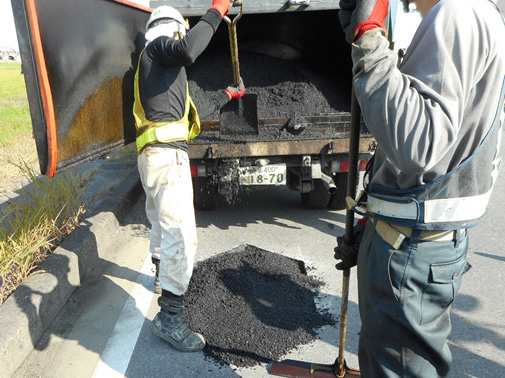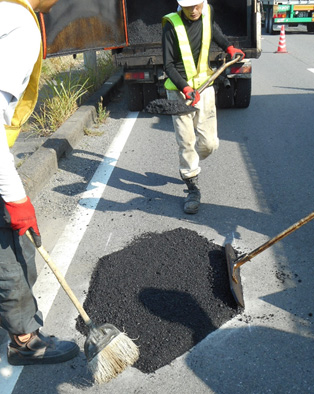 剥がしたアスファルトが通行中の車に当たってしまうと大変!