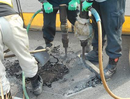 コンクリートブレーカーで剥がしていきます。