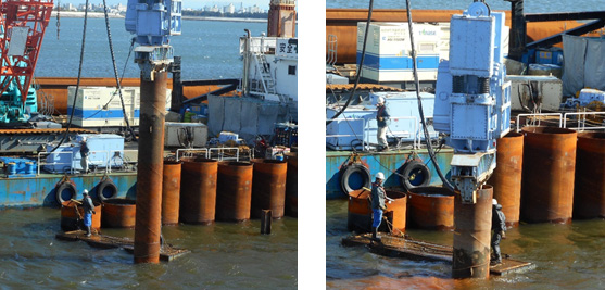 運ばれてきた杭を打っていく光景がとてもダイナミックでした!
