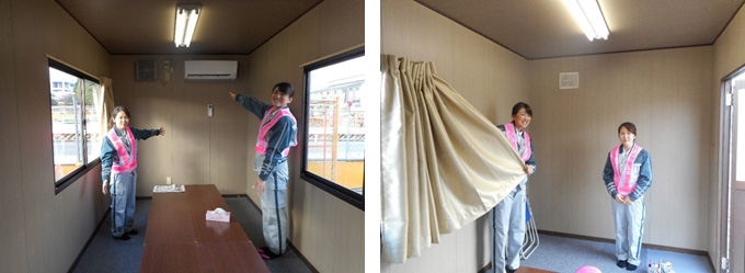 愛知県海部郡飛島村にある堤防改良工事をしている現場の休憩所を