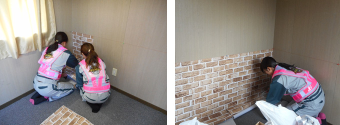 レンガの柄を合わせるために微調整しながら切り取ったり、