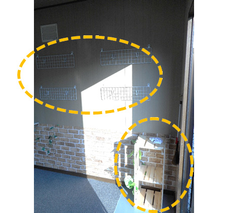 アイアンラティスには可愛いサボテンやリースを飾りました。