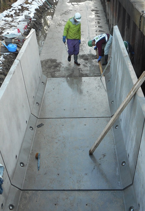 ここでは古くなってしまった水路を新しくする工事をしていました。