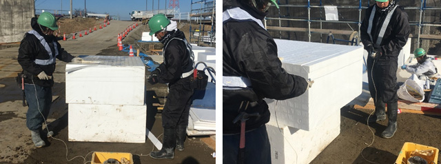 本当に発泡スチロールで仮設道路が作られているんです!