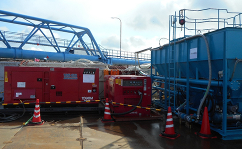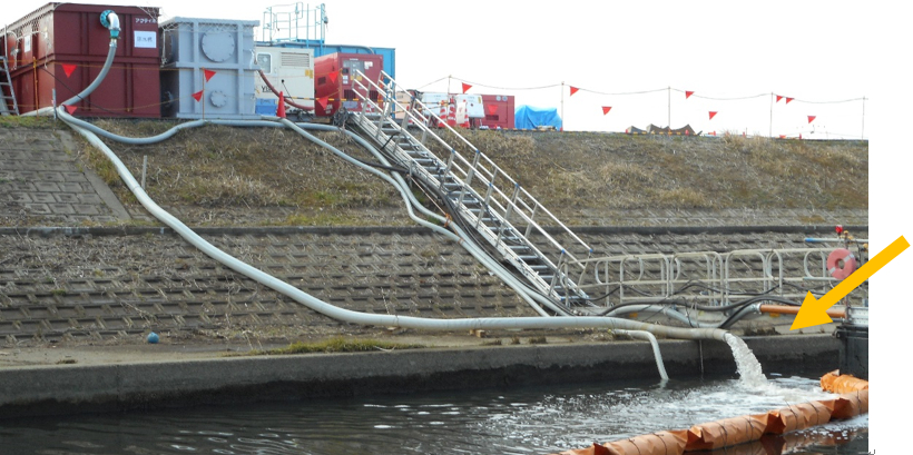 この濁水処理機でキレイになった水は川へ戻されます♪