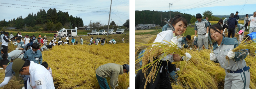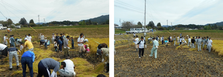 秋の農業体験は稲刈りです。
