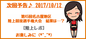 次回は第45回名古屋地区陸上競技選手権大会の陸上レポートです。