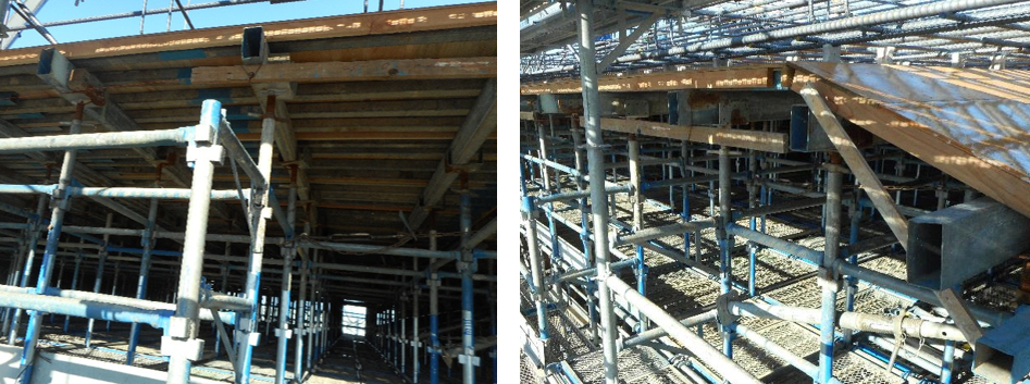 オレンジ色の型枠板を外側にもう一枚設置して、
