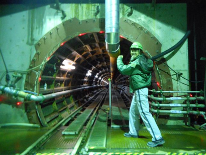 シールドマシンで地下を掘り進み、約700mの農業用水路を作っていました。