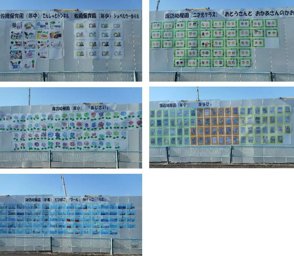 現場周辺の佐織保育園と諏訪幼稚園の子たちが描いてくれたものです(^^)