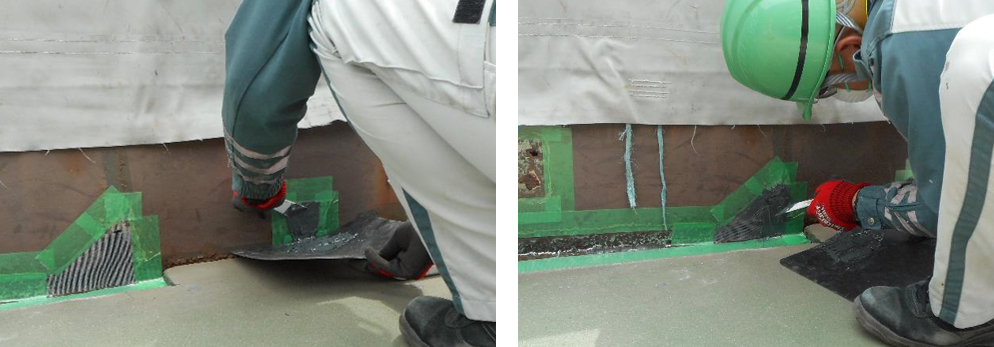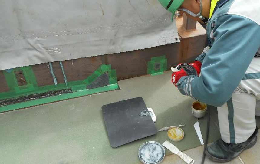 主材と硬化剤を混ぜ合わせだラスタブを丁寧に塗っていきます。